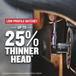 • Low profile ratchet: up to 25% thinner head* for access in tight spaces (1/4 dr & 3/8 dr only as compared to cmmt81747. cmmt81748. & cmmt81749)